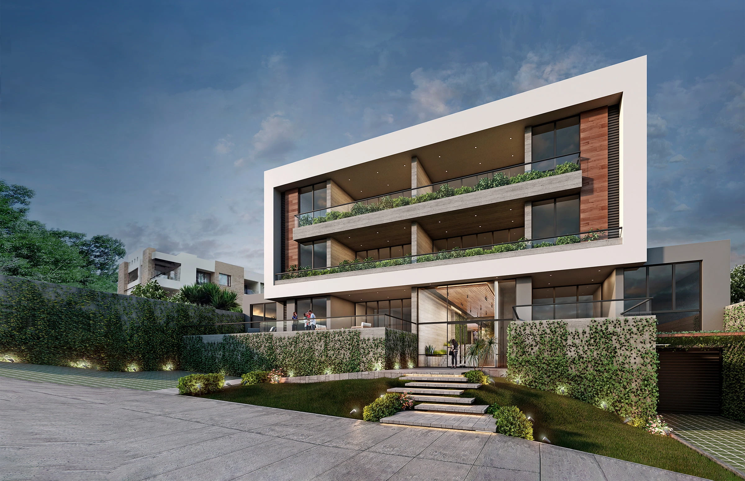 Ubicado en la urbanización Vista Hermosa, este proyecto combina arquitectura moderna y naturaleza, con dos bloques conectados por puentes que miran a jardines arbolados. Sus ambientes amplios y terrazas aprovechan al máximo las vistas únicas del valle de Cumbayá
